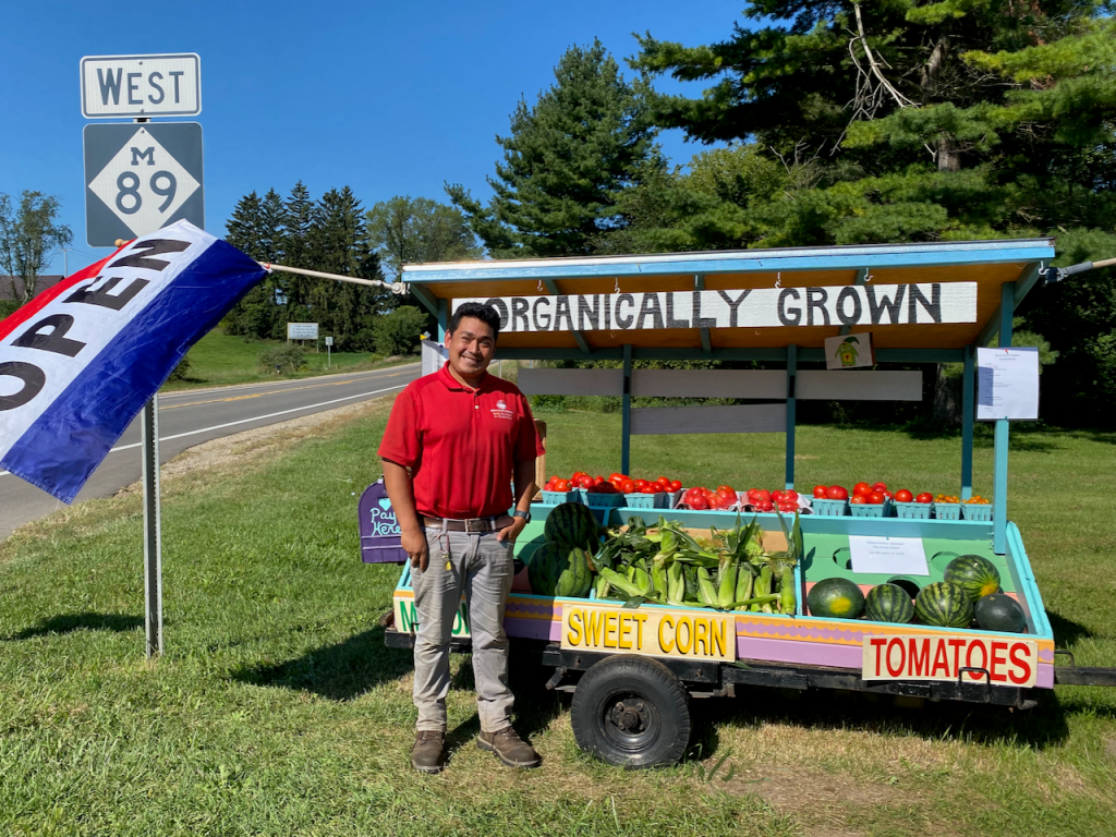 We highly recommend stopping by this local organic farm stand a half mile away from Brower Cottage at M89 and Eagle Point Drive. The fresh organic produce is delicious and Carlos is a great guy. As the son of one of the first organic blueberry farmers in the state of Michigan, Carlos was born & raised into a way of growing things organically and sustainably. He was blessed to learn from his father & mother, who were one of the premier pioneers of organic growing in the Midwest.